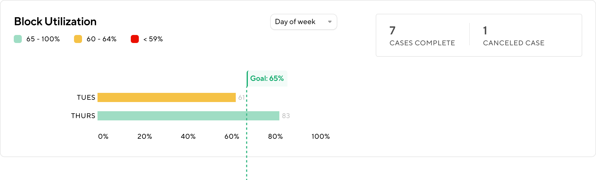 - View block-specific utilization chart: View utilization by block day. You can adjust the view to display data by day of the week or by week to analyze trends over time.