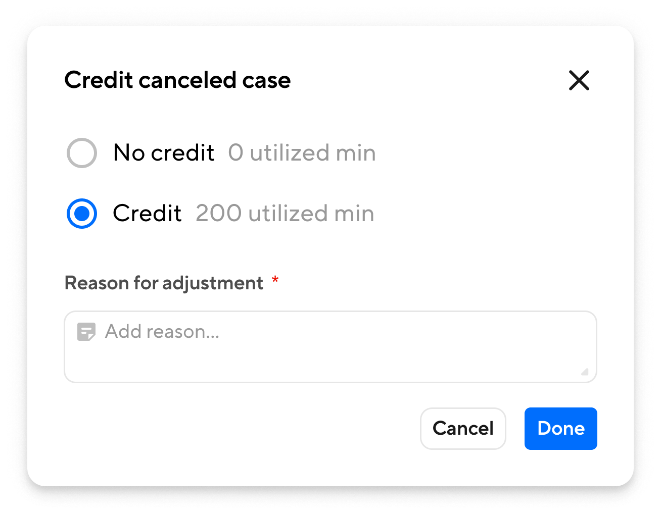 - Toggle between Credit or No Credit to update how the case is included in utilization calculations
