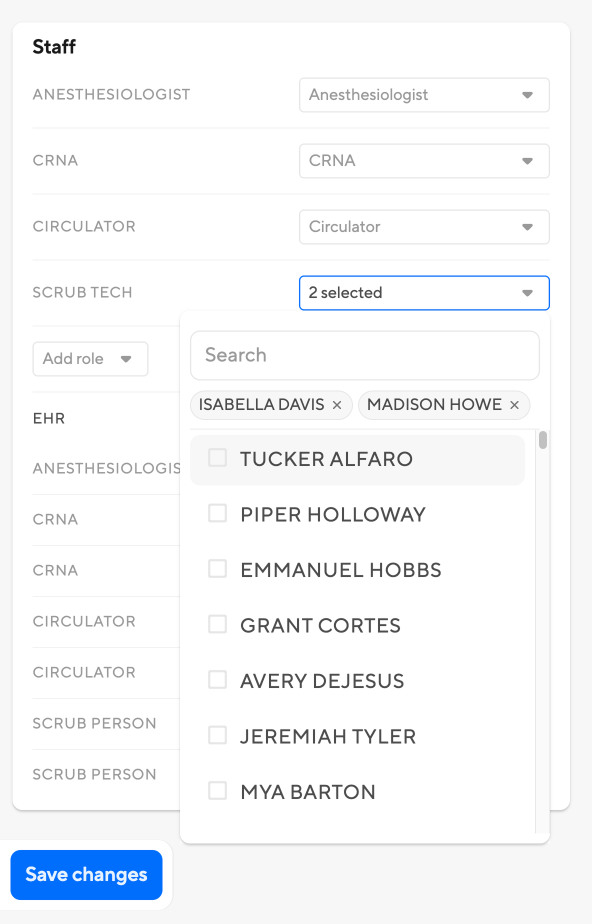 Staffing can also be reviewed at the case level. This is particularly helpful when coverage differs between first-start and later cases or staff rotate mid-day.